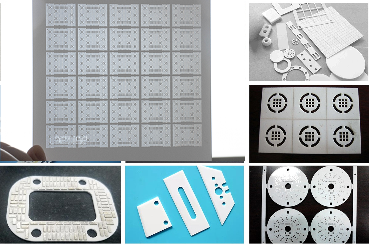 ceramic scribing, ceramic drilling, SMT metal net cutting, stencil drilling, ceramic, sapphire, glass cutting and dicing, wafer dicing, aluminum substrate cutting, large-area light guide plate marking, QR code inspection.